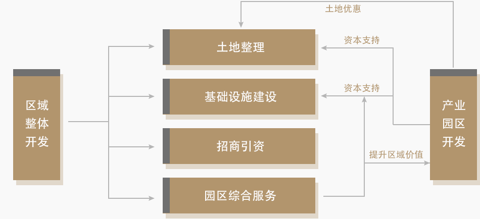 優(yōu)勢(shì)資本整合園區(qū)開發(fā)資源和產(chǎn)業(yè)資源為地方提供“園區(qū)開發(fā)+園區(qū)招商+園區(qū)運(yùn)營”整體解決方案,政府在前期零投入的情況下,快速實(shí)現(xiàn)產(chǎn)業(yè)引進(jìn)和園區(qū)運(yùn)作,隨著園區(qū)不斷成熟,入園企業(yè)的數(shù)量和投資將不斷增加,為政府帶來增量財(cái)政收入和GDP,并解決地方人口的就業(yè)問題。
