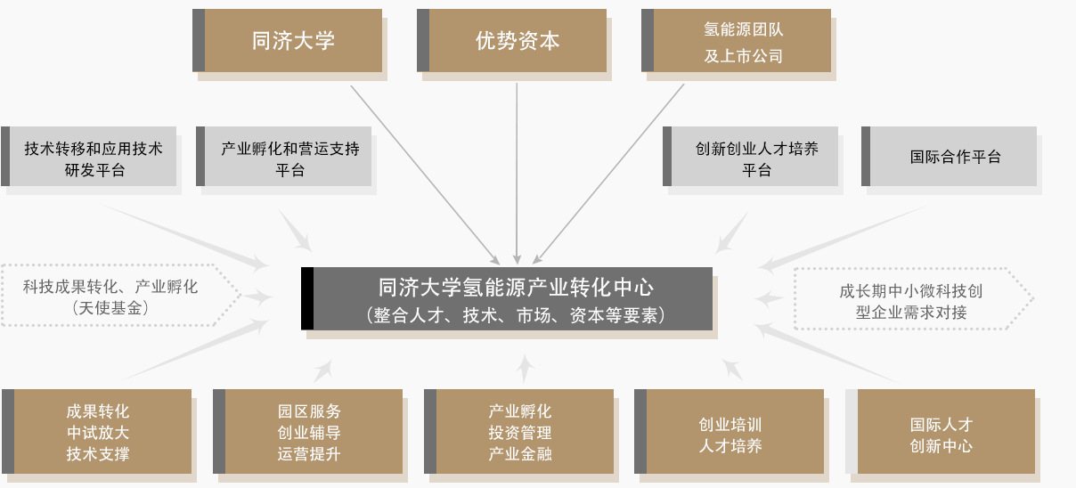 同濟(jì)大學(xué)氫能源產(chǎn)業(yè)轉(zhuǎn)化中心:由同濟(jì)大學(xué),優(yōu)勢(shì)資本,氫能源團(tuán)隊(duì)及上市公司聯(lián)合共建。中心依托優(yōu)勢(shì)資本全球化的氫能資源平臺(tái),結(jié)合同濟(jì)大學(xué)國內(nèi)外一流的科技儲(chǔ)備,打造成為國際領(lǐng)先的氫能動(dòng)力系統(tǒng)核心技術(shù)成果轉(zhuǎn)化平臺(tái),為產(chǎn)業(yè)不斷注入新的科技力量。