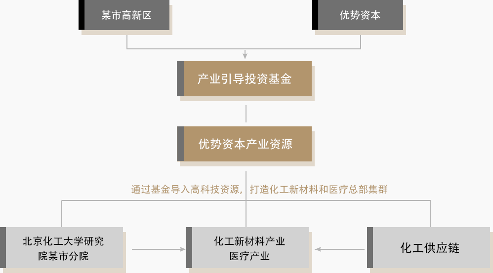 優(yōu)勢(shì)資本與安慶高新區(qū)合作設(shè)立產(chǎn)業(yè)基金,基金規(guī)模10億?;鸾Y(jié)合該地區(qū)化工新材料和醫(yī)療產(chǎn)業(yè)基礎(chǔ),利用優(yōu)勢(shì)資本資源為安慶篩選優(yōu)秀的具有核心價(jià)值的成長(zhǎng)階段企業(yè),并以資本引導(dǎo)企業(yè)總部企業(yè)落地某地,助力打造某地化工和醫(yī)療醫(yī)藥產(chǎn)業(yè)經(jīng)濟(jì)群。
